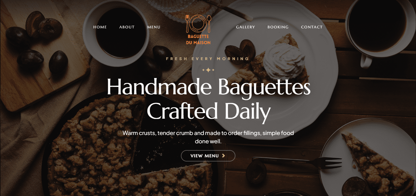 Baguette Du Maison, a neighbourhood bakery and café in Birmingham, partnered with UseCodify to build a classy, multi-page landing website that showcases their handmade baguettes, coffee, and quick-service menu. The goal was a clean, fast, English-only site that lets customers view the menu, book a table, and contact the shop with minimal friction.