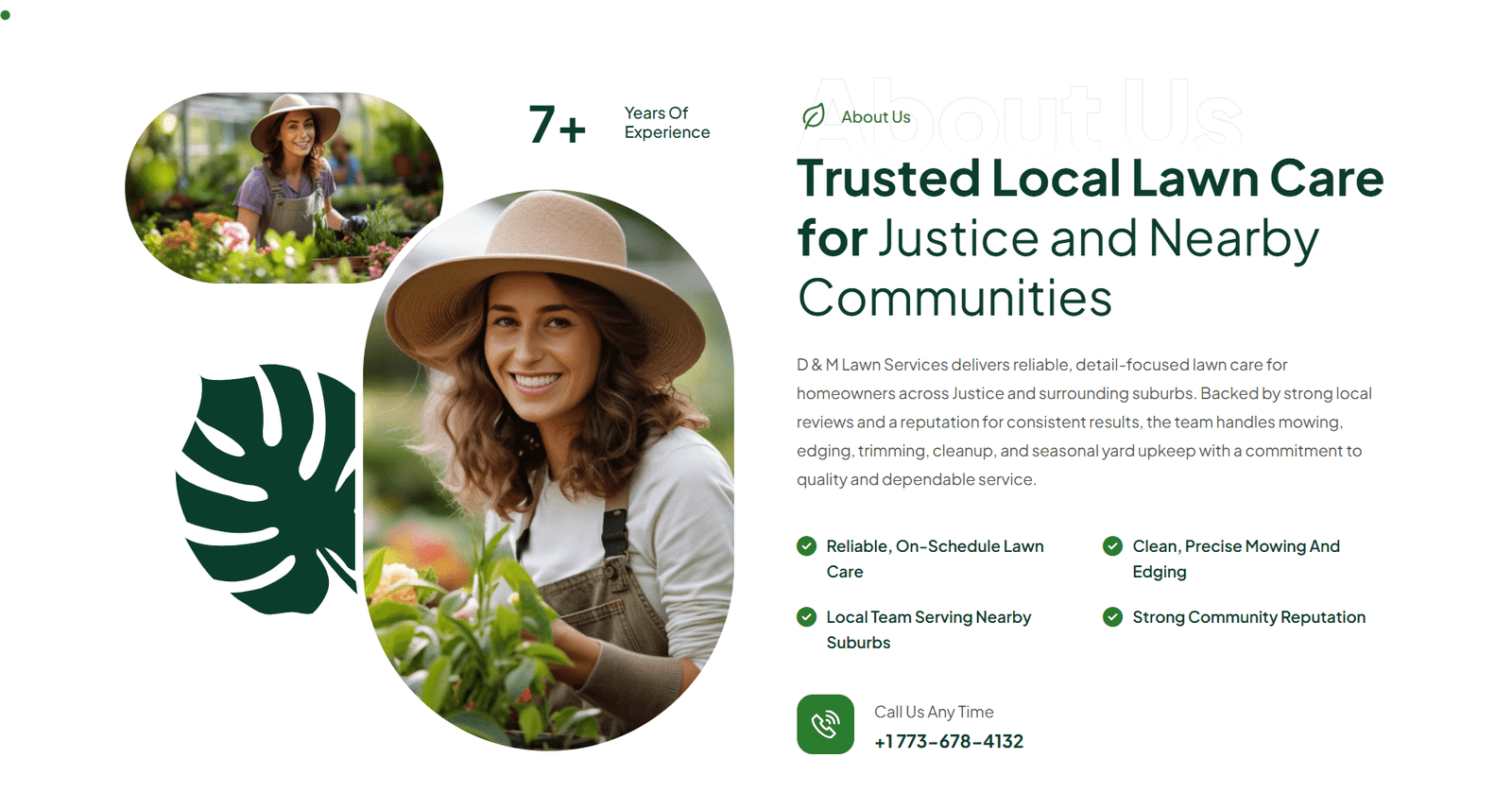 D & M Lawn Services provides residential and commercial lawn care services for customers in and around Justice, Illinois. Their work focuses on reliable maintenance, seasonal services, and consistent quality. They needed a professional website that helps customers understand their services quickly and makes it easy to get in touch.