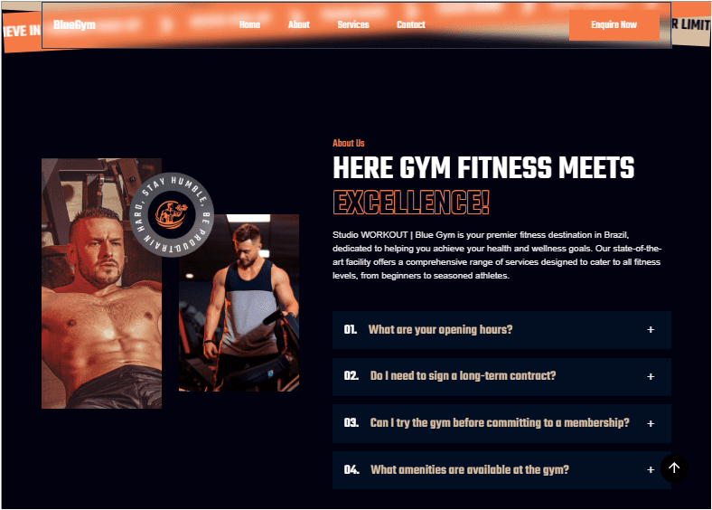 Studio WORKOUT | Blue Gym prides itself on offering a diverse range of fitness services including personal training, group fitness classes, nutritional guidance, and specialized challenges like kickboxing and calisthenics. With a strong commitment to community and wellness, the gym sought to modernize its online platform to better serve existing members and attract new clientele.
