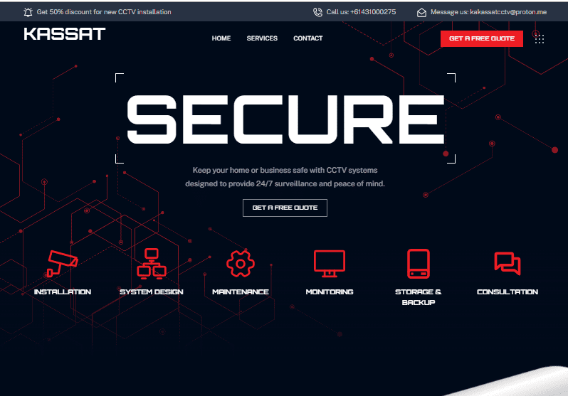 KassaT CCTV, a professional security and surveillance company in Australia, needed a modern website to showcase their CCTV installation services, attract potential customers, and generate inquiries. They required a custom-built website without relying on CMS platforms like WordPress, ensuring speed, security, and full control over the design and functionality.
