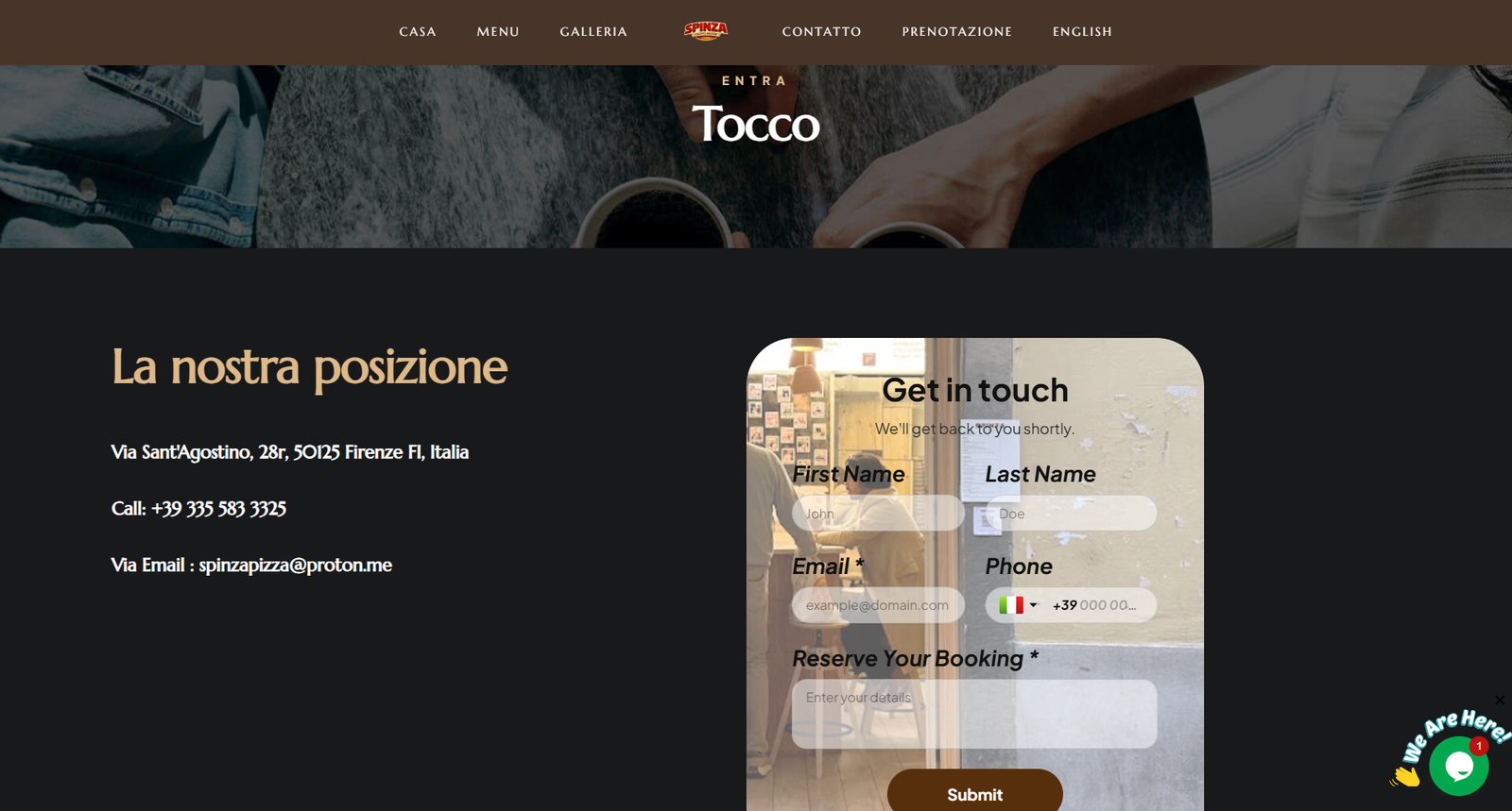 Spinza, located at Via Sant'Agostino 28r, 50125 Firenze, Italy, partnered with UseCodify to create a modern multi page landing website. The objective was to present their offerings clearly, support both Italian and English visitors, and provide smooth communication through live chat, map integration, and a unified contact form while showcasing the venue visually.